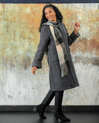The Wild Earth Cloak is a very unique piece as it can act as both an accessory and a stand-alone jacket. It feels like you are going out in a blanket but looks like a stunning, classy statement piece. The button and elastic closure makes it a great accessorizing piece as it doesn’t cover up your under layers as much as a big coat or jacket. In this way you can build a beautiful outfit and then easily and seamlessly add the cloak over the top to really make the outfit pop. It gives a truly designer look for all body types and with the neutral grey tones it doesn’t take anything away from the outfit underneath. See below: